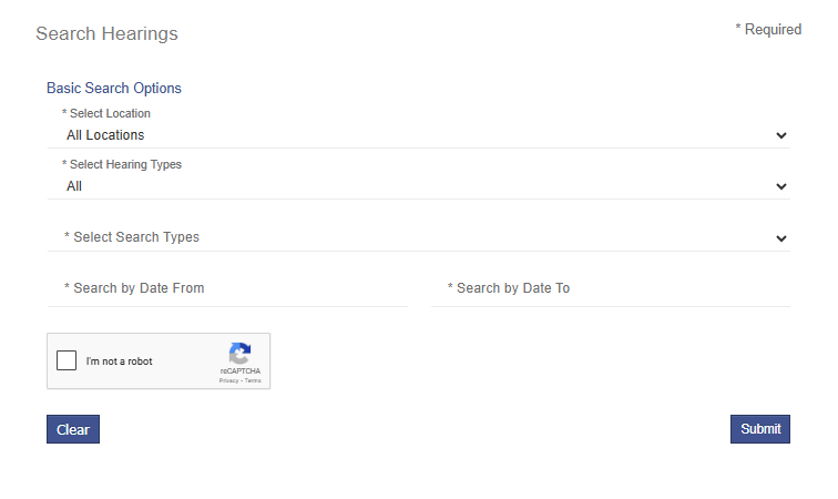 - Choose “Search Court Records & Hearings” or Court Public Portal from the menu.
